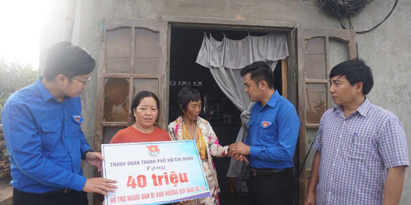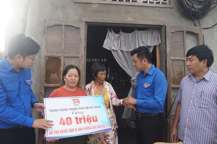 Thành đoàn HCM: Trao 200 suất quà hỗ trợ người dân xã Phù Mỹ Đông khắc phục hậu quả bão số 13