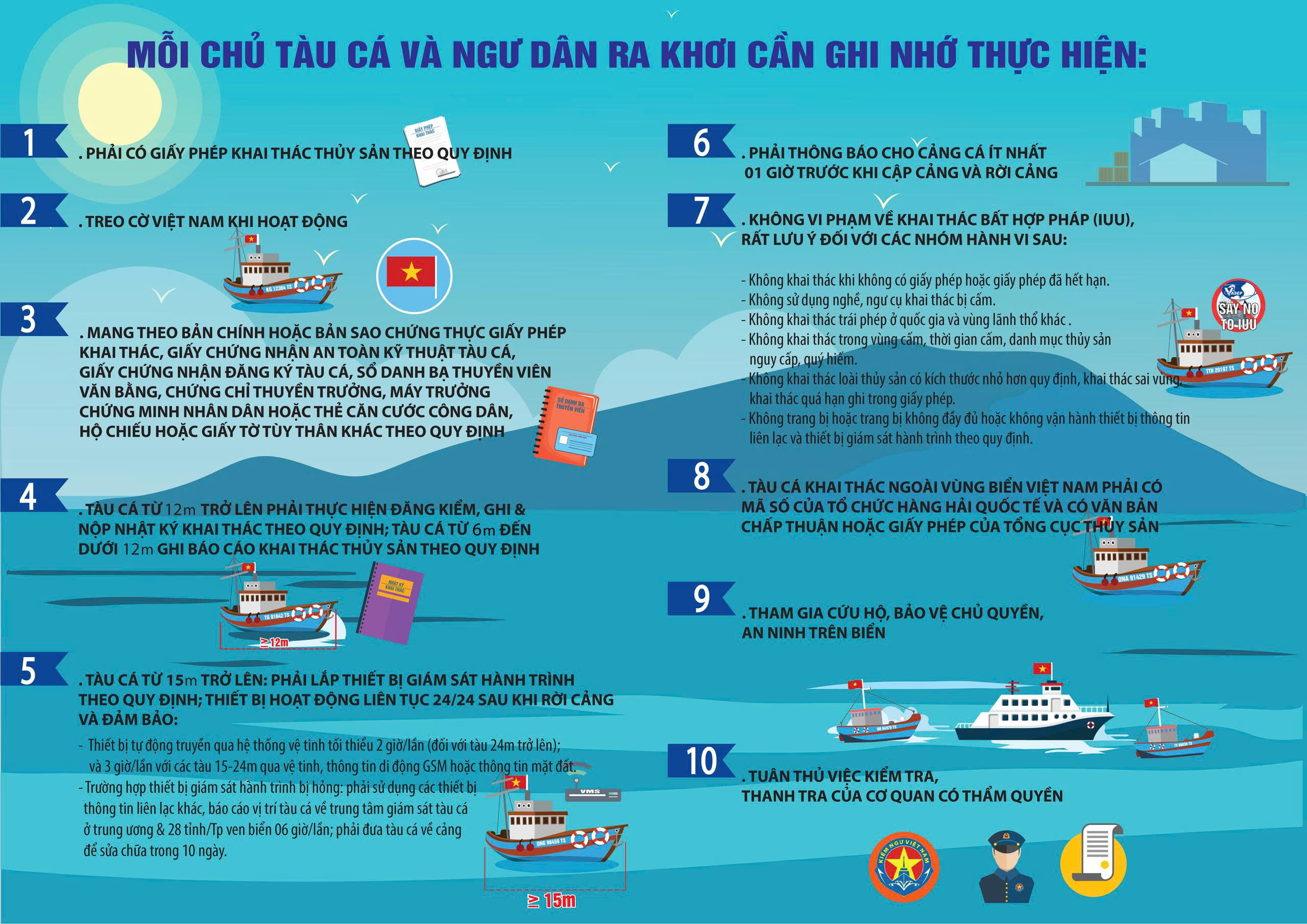 Việc chấm dứt tình trạng tàu cá không đủ điều kiện hoạt động, đặc biệt là hành vi khai thác thủy sản bất hợp pháp (IUU) là nhiệm vụ trọng tâm và cấp bách của toàn xã. UBND xã đề nghị toàn thể ngư dân Phù Mỹ Đông nâng cao ý thức, chủ động phối hợp với chính quyền và lực lượng chức năng, thực hiện nghiêm các quy định trong công tác phòng, chống khai thác IUU. Đây không chỉ là trách nhiệm pháp lý mà còn là hành động thiết thực góp phần giúp Việt Nam gỡ “thẻ vàng” của Ủy ban Châu Âu (EC), bảo vệ uy tín hàng thủy sản Việt Nam trên thị trường quốc tế, đồng thời giữ gìn nguồn lợi thủy sản bền vững cho thế hệ mai sau.