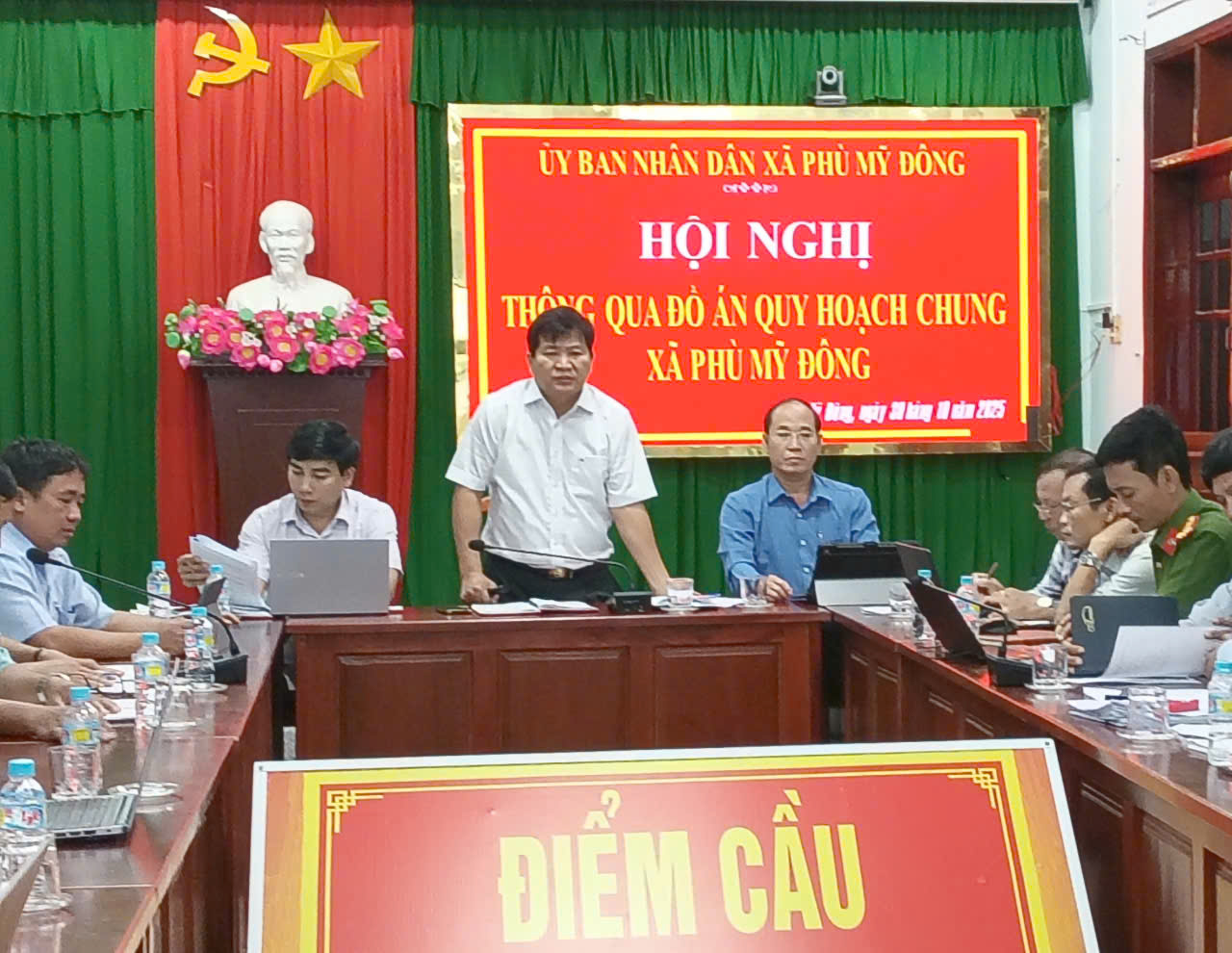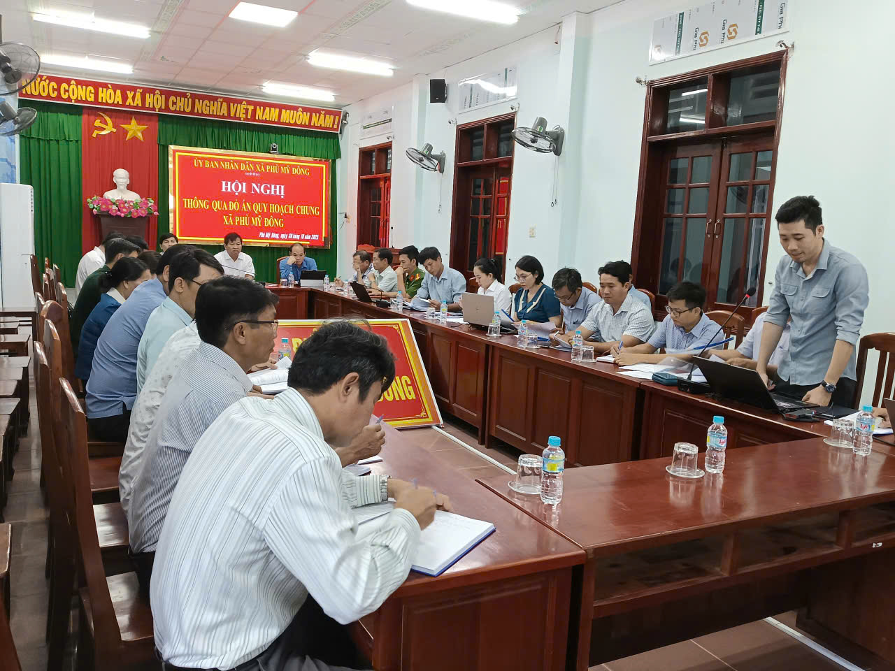 Tại Hội nghị, các đại biểu đã nghe đại diện đơn vị tư vấn trình bày báo cáo thuyết minh tóm tắt Đồ án quy hoạch chung xây dựng xã Phù Mỹ Đông đến năm 2035, tầm nhìn đến năm 2045. Theo đó, Đồ án Quy hoạch chung được lập nhằm định hướng xã Phù Mỹ Đông là khu vực kinh tế phía Đông - Bắc tỉnh Gia Lai, có tiềm năng phát triển công nghiệp chế biến trở thành trụ đỡ của nền kinh tế, phát triển năng lượng tái tạo, dịch vụ cảng biển-logistics, du lịch biển gắn với biển Đông, và cảnh quan sinh thái Đầm Trà Ổ. Theo quy hoạch, Định hướng không gian phát triển xã Phù Mỹ được chia thành 04 phân khu, gồm: Phân khu 1: Quy mô 2.440 ha, được xác định phát triển đô thị du lịch biển Quốc tế - du lịch sinh thái Đầm Trà Ổ; Phân khu 2: Quy mô 1.091 ha, được xác định là khu vực phát triển đô thị trung tâm gắn với đào tạo nguồn nhân lực – dịch vụ cảng biển; Phân khu 3: Quy mô 1.780 ha, được xác định là khu vực phát triển đô thị công nghiệp và du lịch; Phân khu 4: Quy mô 3.251 ha, được xác định là khu vực phát triển nông – lâm nghiệp.