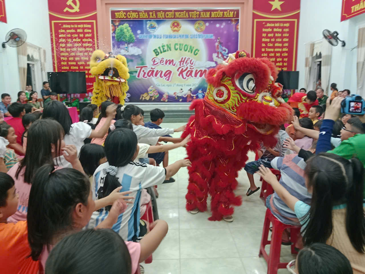 Tại chương trình, các cháu thiếu niên, nhi đồng của xã nhà được vui chơi, ca hát, được xem múa lân, và được nhận lồng đèn, bánh kẹo cùng đón một mùa Trung thu thật ấm áp, vui vẻ.