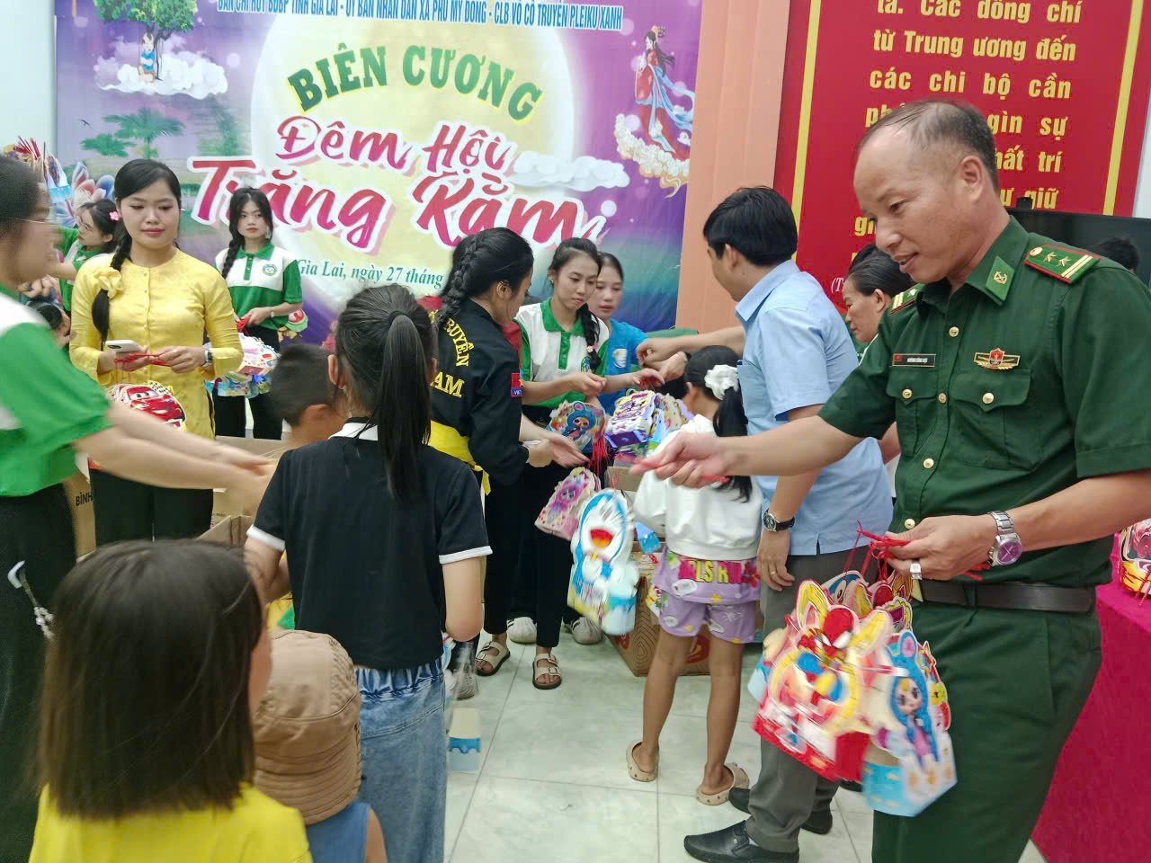Phát biểu tại chương trình nhằm động viên các cháu thiếu niên, nhi đồng, Đại tá Nguyễn Thủy Vũ - Chủ nhiệm Chính trị BĐBP tỉnh nhấn mạnh: Trong thời gian qua, các đơn vị trong BĐBP tỉnh Gia Lai đã thường xuyên quan tâm đến các cháu thiếu niên, nhi đồng ở khu vực biên giới. Thực hiện Chương trình “Nâng bước em tới trường - Con nuôi đồn Biên phòng” và Dự án “Cán bộ, chiến sĩ Quân đội nâng bước em tới trường”, các đơn vị đã hỗ trợ, giúp đỡ hàng nghìn lượt các cháu có hoàn cảnh khó khăn, đặc biệt khó khăn có điều kiện đến trường, trở thành con ngoan trò giỏi. Từ kết quả của chương trình, Ban Chỉ huy BĐBP tỉnh đã chỉ đạo các đồn Biên phòng tiếp tục phối hợp cùng với các địa phương, nhà trường ở các xã biên giới của tỉnh tổ chức Chương trình “Biên cương - Đêm hội trăng rằm” tại địa bàn để các cháu thiếu niên, nhi đồng cùng được đón Tết Trung thu, nhất là các cháu có hoàn cảnh khó khăn, thiệt thòi trong cuộc sống. Qua đó, cùng cấp ủy, chính quyền địa phương, các nhà trường tạo điều kiện tốt nhất để các cháu được vui chơi, học tập cùng tiến bộ. Đồng thời, mong muốn các cháu thiếu niên, nhi đồng tiếp tục học tập, xứng đáng là con ngoan, trò giỏi, người có ích cho xã hội, tiếp tục phát huy truyền thống hiếu học của gia đình, dòng họ, địa phương…