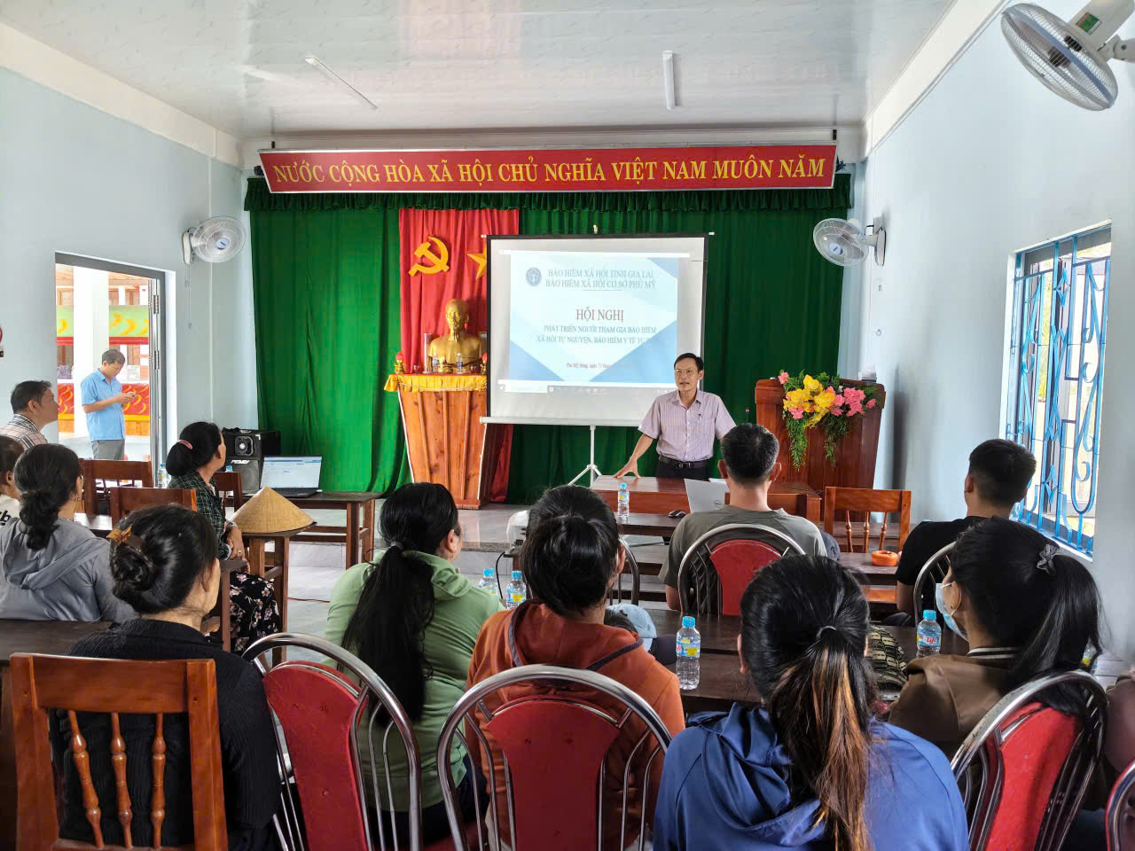 Chiều ngày 23/10/2025, Tai Nhà Văn hóa thôn Tân Phụng 1, UBND xã phối hợp Bảo hiểm xã hội cơ sở Phù Mỹ, công ty TNHH dịch vụ thương mại tổng hợp Gia Phú tổ chức Hội nghị Ban tuyên truyền chính sách BHXH tự nguyện, BHYT tự đóng cho hơn 50 người dân thôn Tân phụng 1, Tân Phụng 2 và thôn 8 Tây. Ông Nguyễn Kim Trắc- Phó Chủ tịch UBND xã, Phó Trưởng Ban thường trực Ban Chỉ đạo chủ trì Hội nghị, cùng dự có các thành viên Ban Chỉ đạo thực hiện chính sách BHXH, BHYT xã.